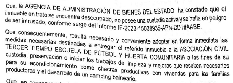 Luego del rechazo por parte del Concejo Deliberante y las causas en la Justicia Federal iniciadas por Montenegro, se venció el plazo de la cesión y el convenio quedó sin efecto. Antes de que cambie el gobierno nacional, el 24 de Noviembre de 2023, la AABE cede el uso de las hectareas al gobierno provincial con el fin de desarrollar allí un "polo agroecológico"